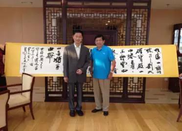 朱守道先生的办公室距离人民大会堂只有几步远,一会儿就到了。朱先生果然是一派儒雅气质,说话温文有礼,举手抬足都是透着有学问。他看了我的几行字之后,当场表示喜欢,并且表态一定会在近日完成书法誊写,装表后以后再送给白主任。